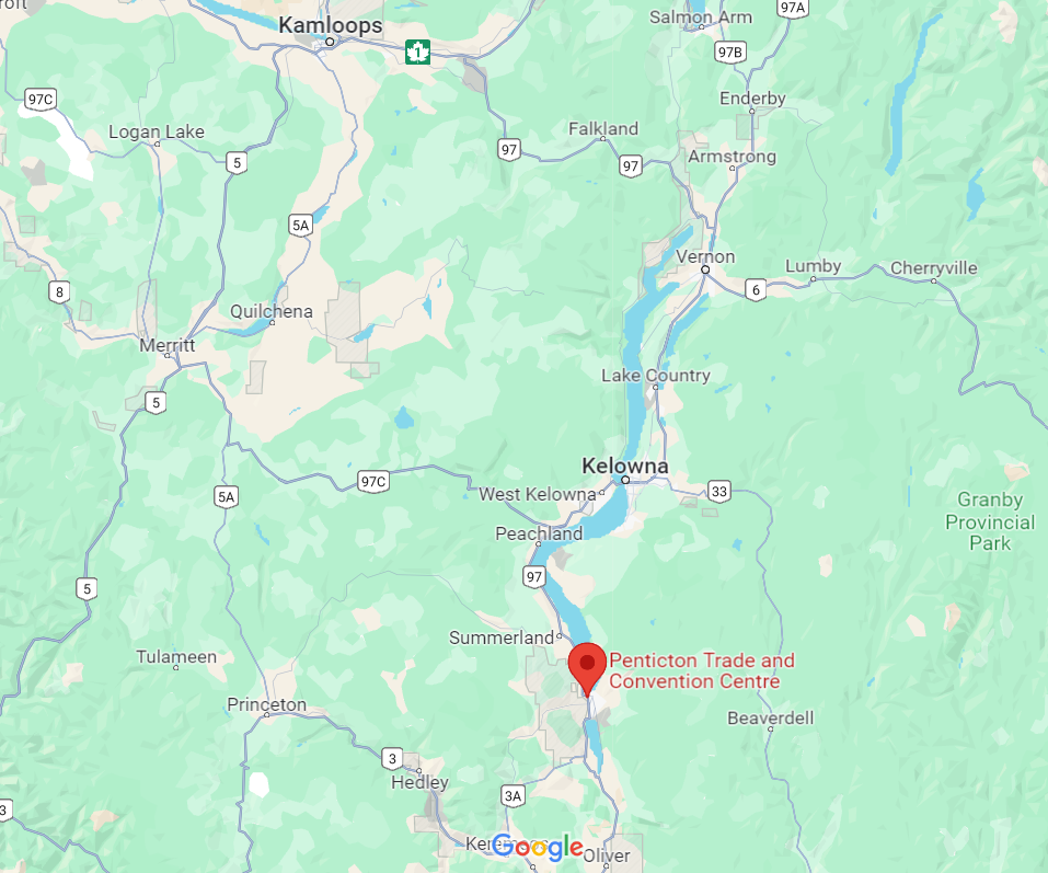 - Kelowna International Airport (YLW) - approximately 1 hour drive from Penticton and features air service between other major destinations.